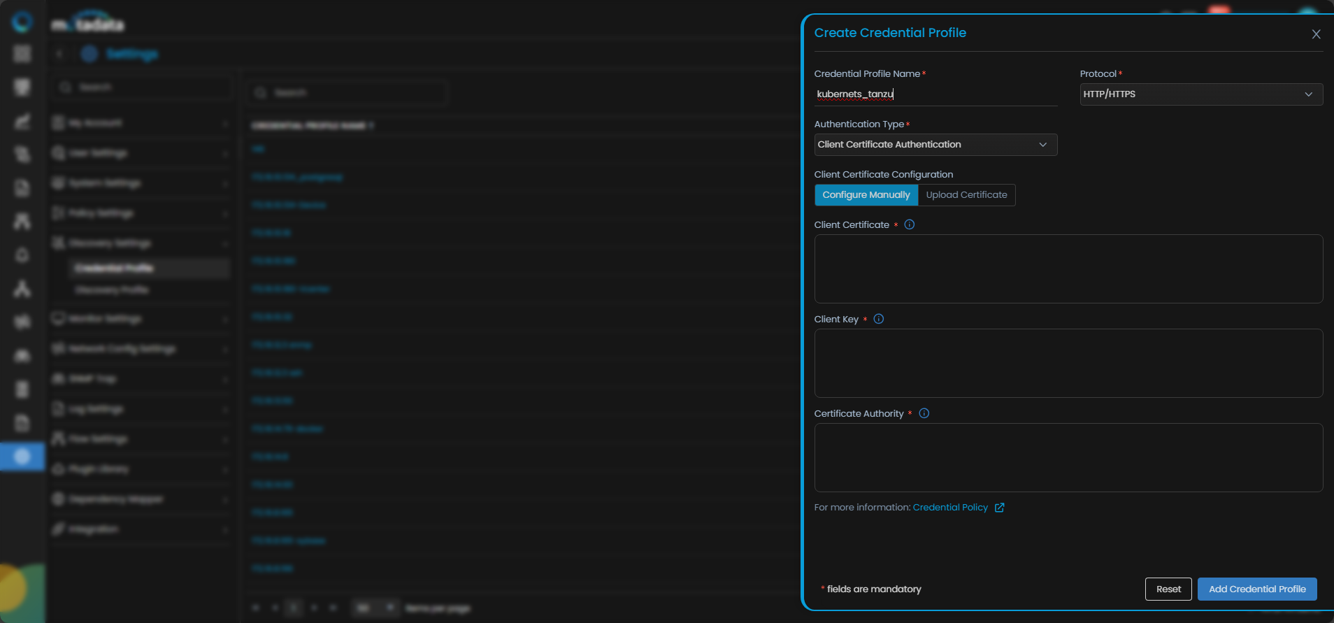 We will start by creating a credential profile for the cluster you are trying to discover and monitor.
