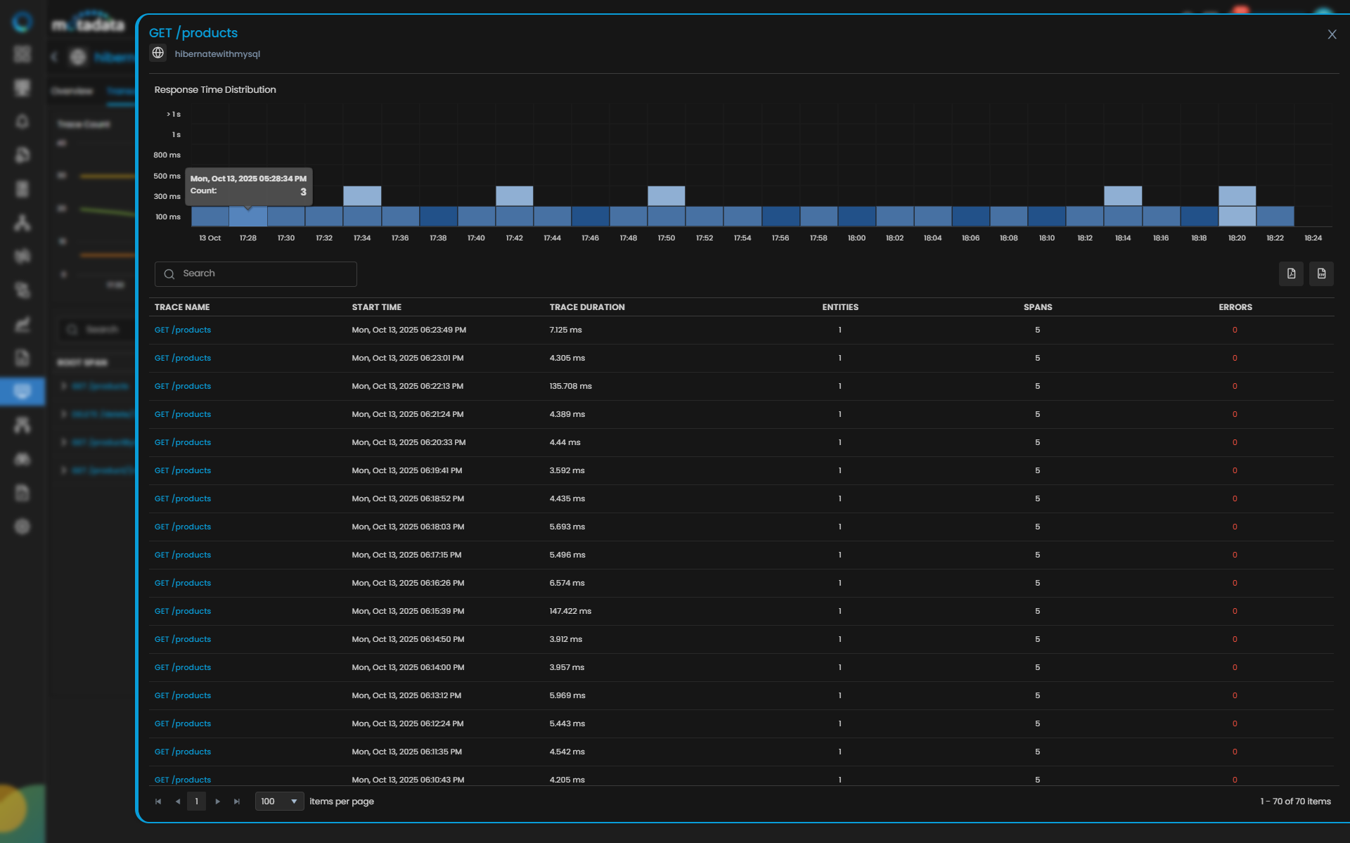 | Spans | Total number of spans the Trace consists. |