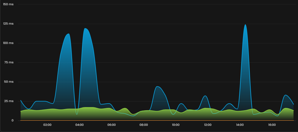 Chart visualisation is a timeseries graph showing the value of metrics against time.