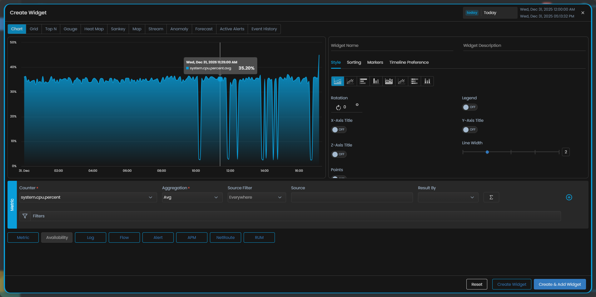 Select the type of the visualization that you want to use to display data on the widget. There are a variety of visualization methods available for widgets: