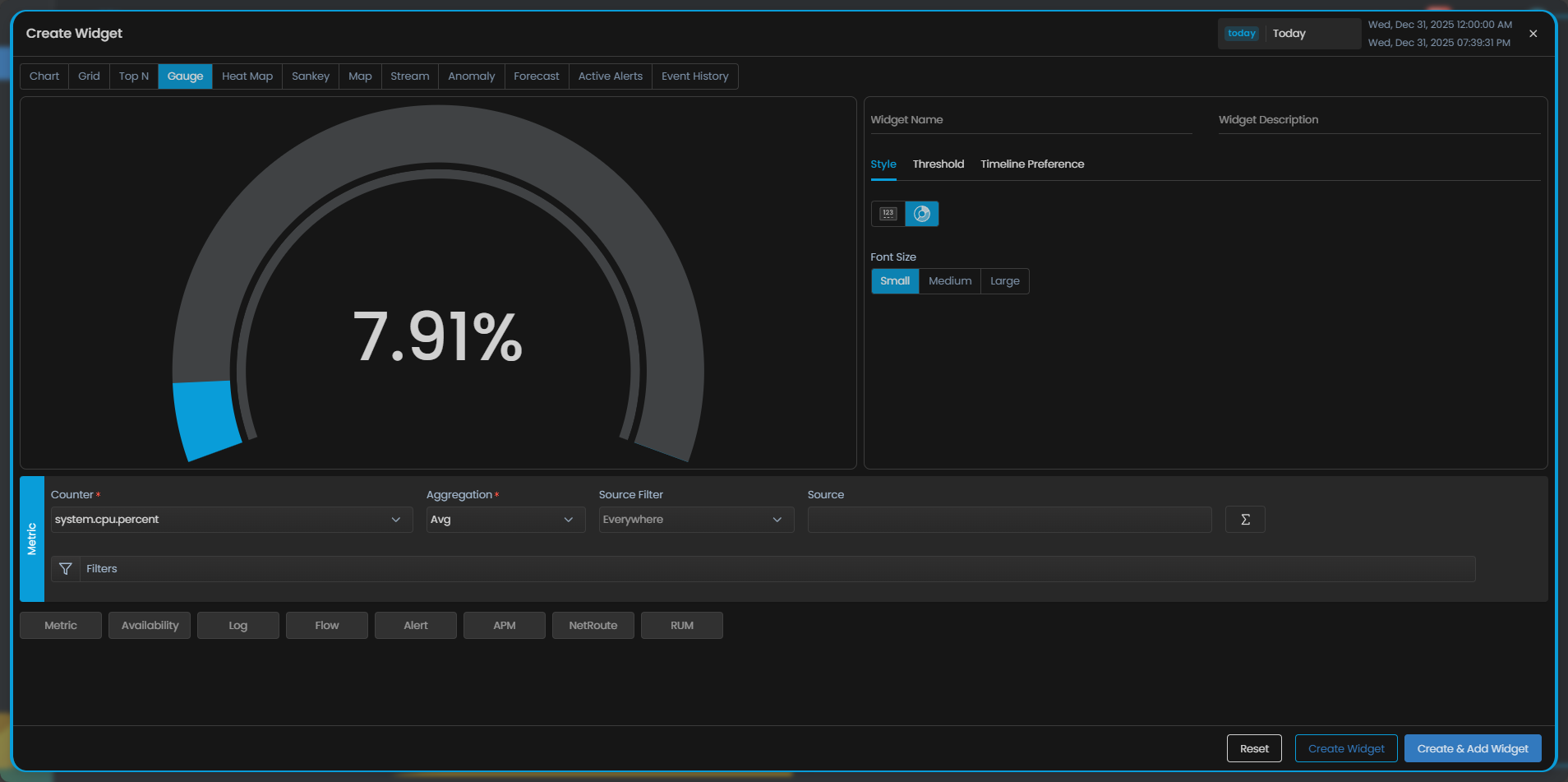 Select Gauge to create a widget with Gauge visualisation.