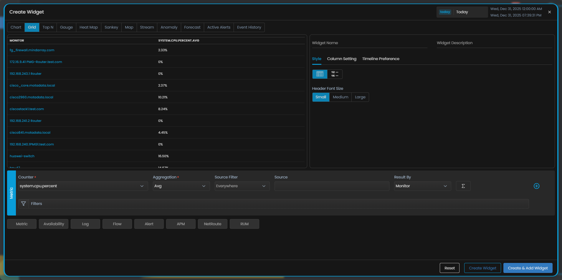 For example, you want to view the power state of all the VMs from all the ESXi that you have setup as monitors in the AIOps in a tabular format. You can do this by creating a Grid widget.