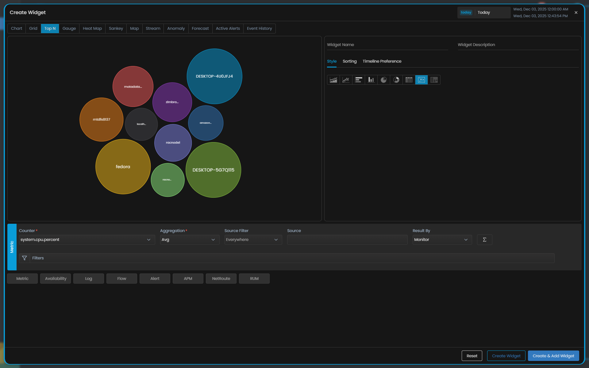 Select Top N to create a widget with Top N visualisation.