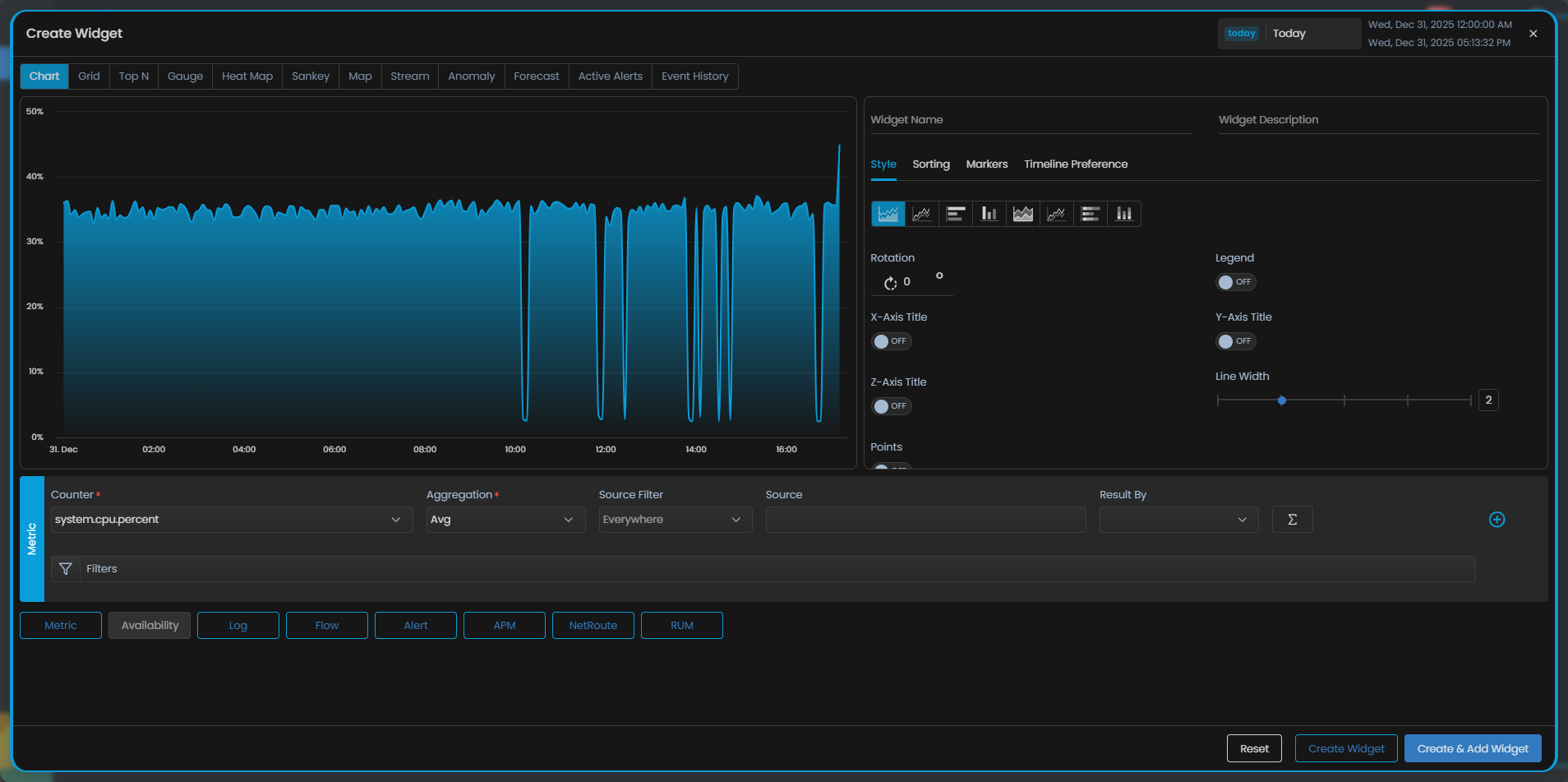Select any widget from listed to create a new widget of your own and add it to the dashboard. The screen to create a widget is now displayed.