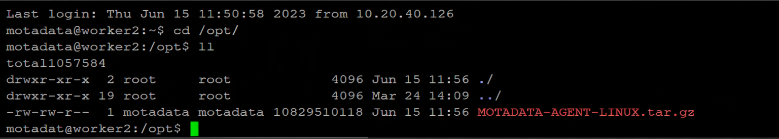 Perform Step 5 only if you have changed the default name of “MOTADATA-AGENT-UBUNTU.tar.gz” folder.