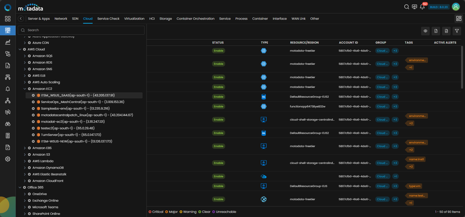 After running the Cloud rediscovery, you can see the list of all the new instances from all the monitors in the system. This is the list of all the instances that were setup in the devices after they are provisioned as monitors.
