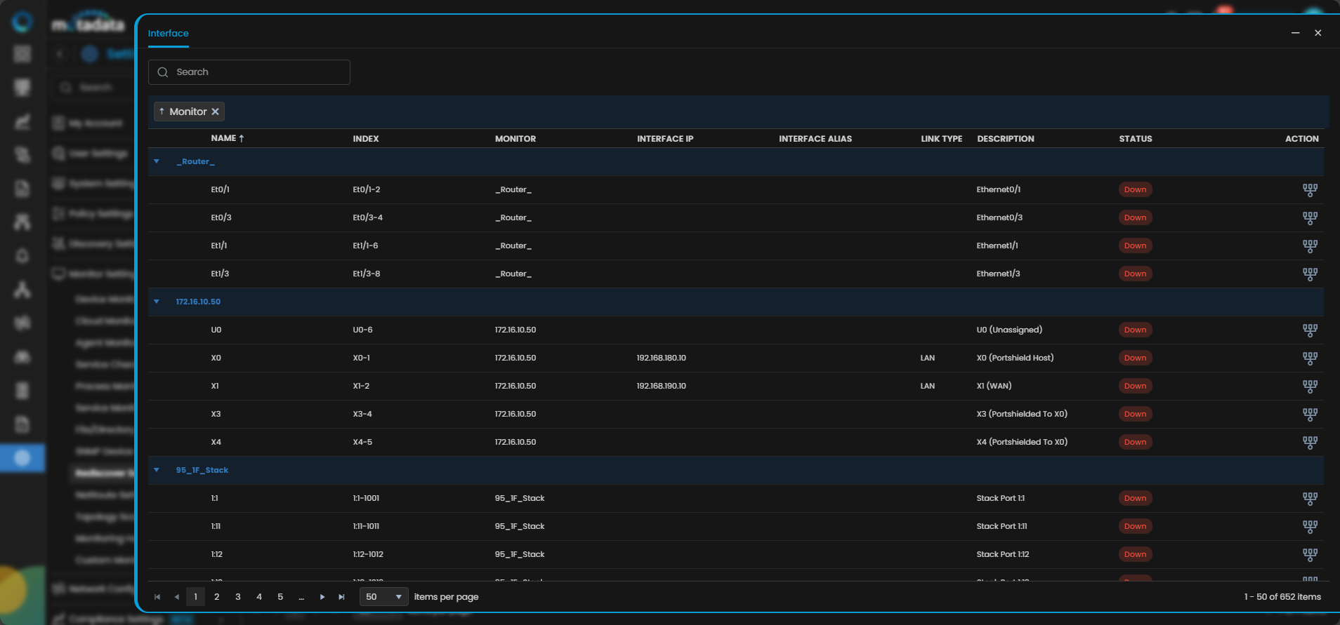 After running the Interface rediscovery, you can see the list of all the interfaces from all the devices provisioned as monitors in the system.