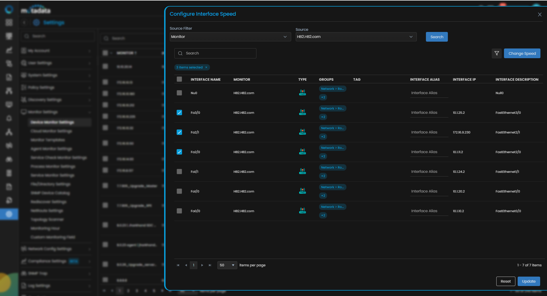 With this release, an option to change Interface speed in bulk has been added. This new functionality improves efficiency when updating interface speeds for multiple network devices simultaneously.