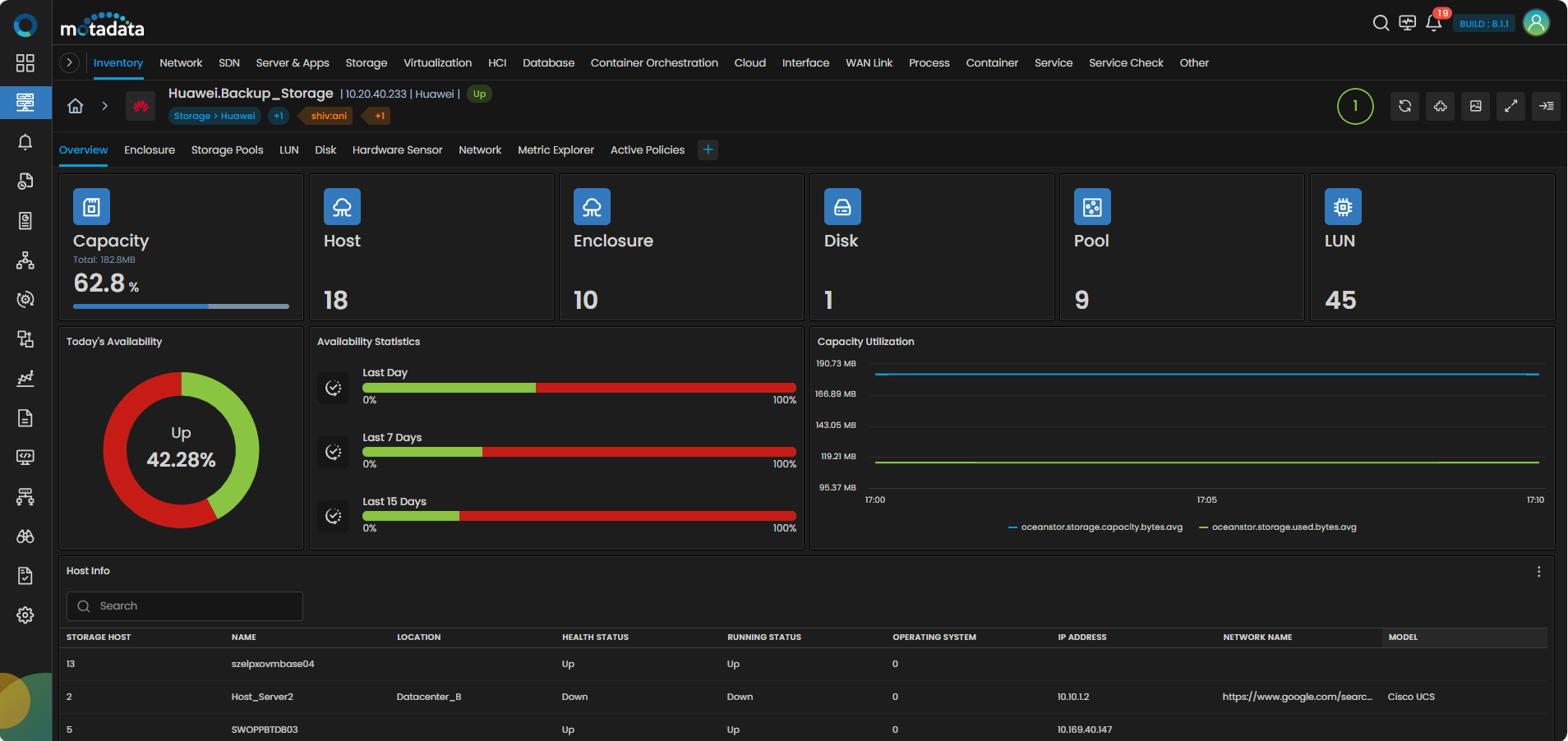 With this release, Huawei OceanStor monitoring support has been implemented. This new feature allows for comprehensive monitoring of Huawei OceanStor storage systems within the platform.