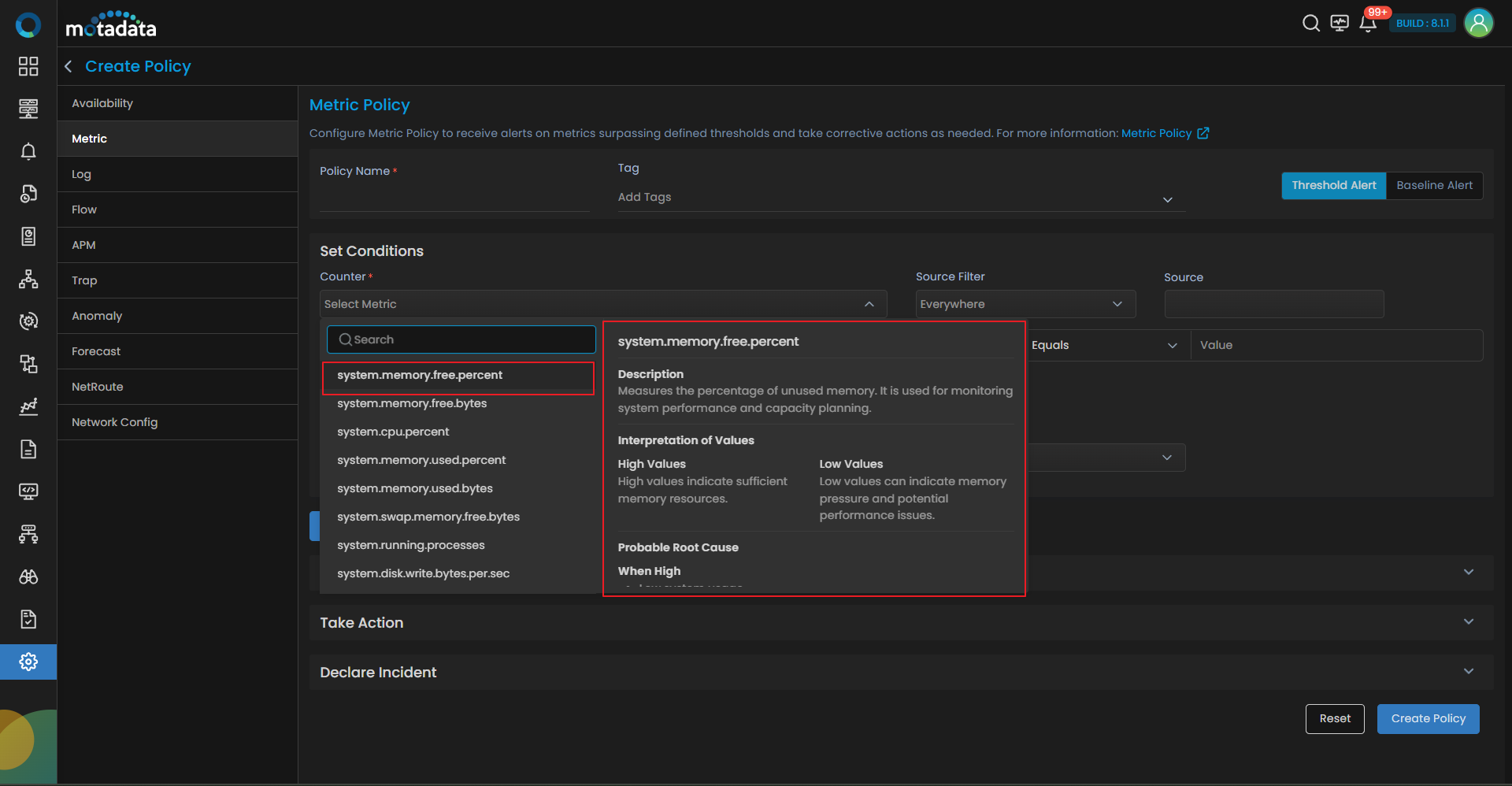 KPI Description feature has been added while creating widgets and policies. This enhancement helps users better understand respective Key Performance Indicators.