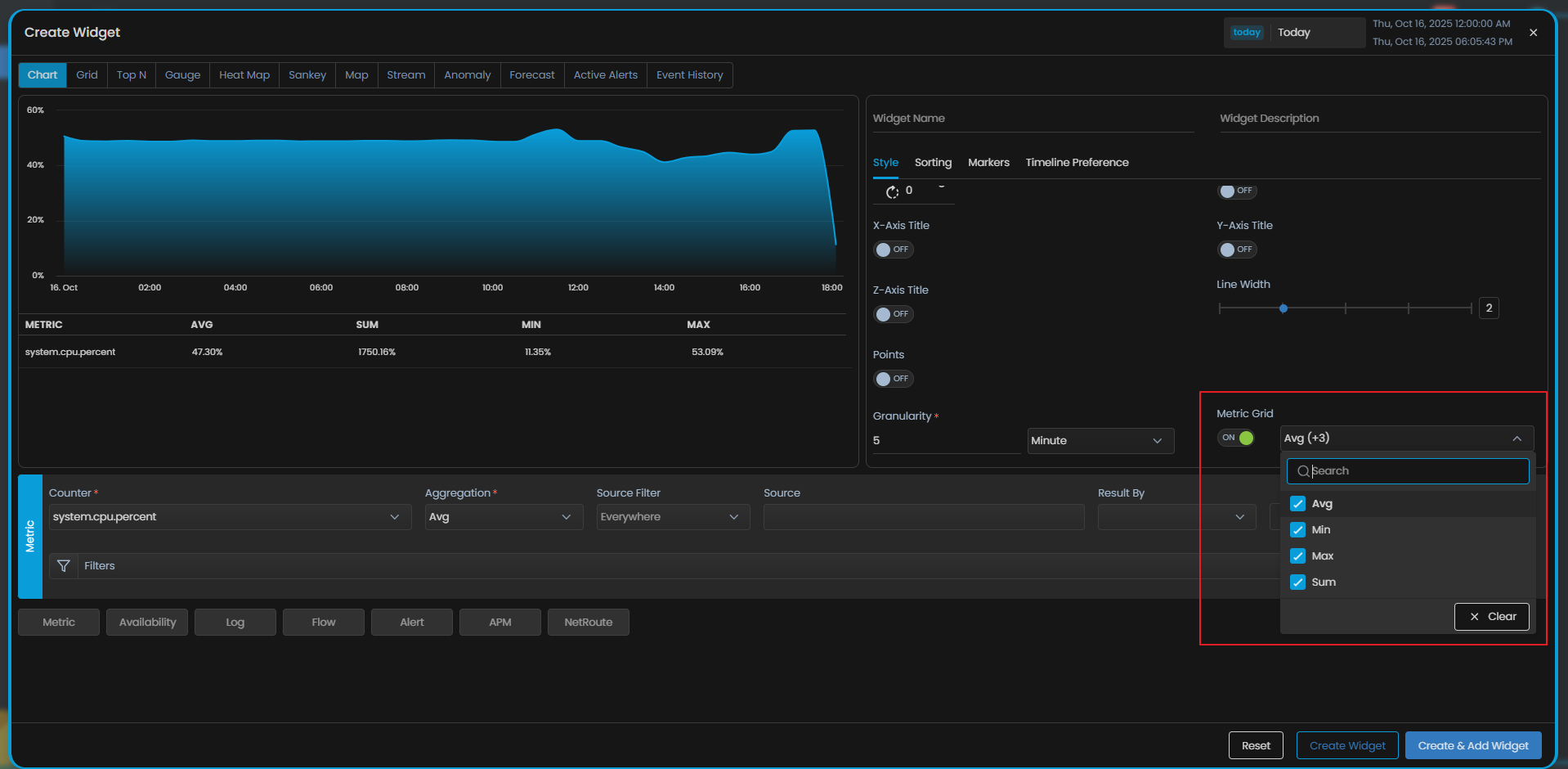 Metric Grid View with Multiple Aggregation Support in Chart Widget