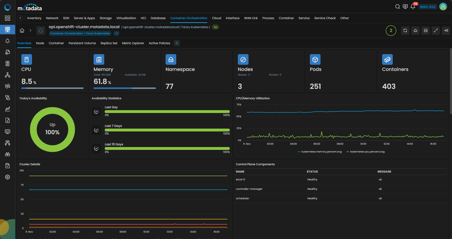 With this release, Motadata AIOps brings OpenShift Monitoring support. This new feature enables users to monitor and manage the OpenShift container platform, providing valuable insights into cluster health, performance, and resource utilization.