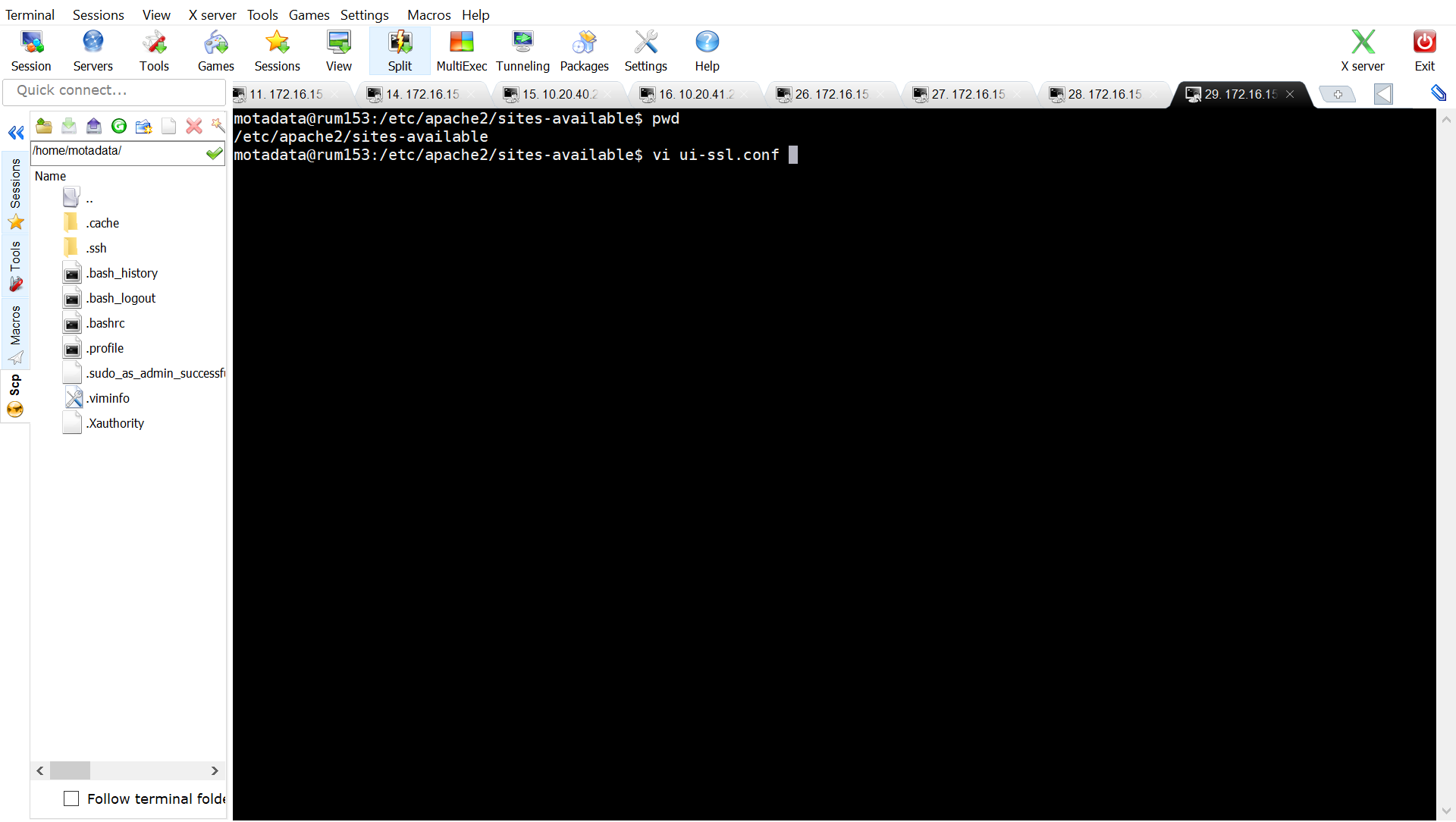 sudo vi </etc/apache2/sites-available/ui-ssl.conf>(apache.config file path)
