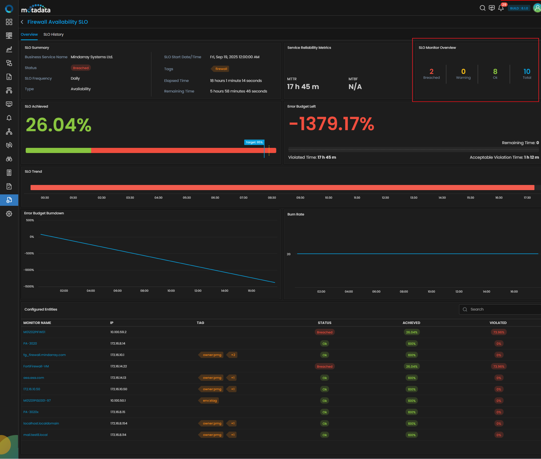 As displayed in the above image, only 2 out of 10 monitors have violated their thresholds and fall under the Breached category.