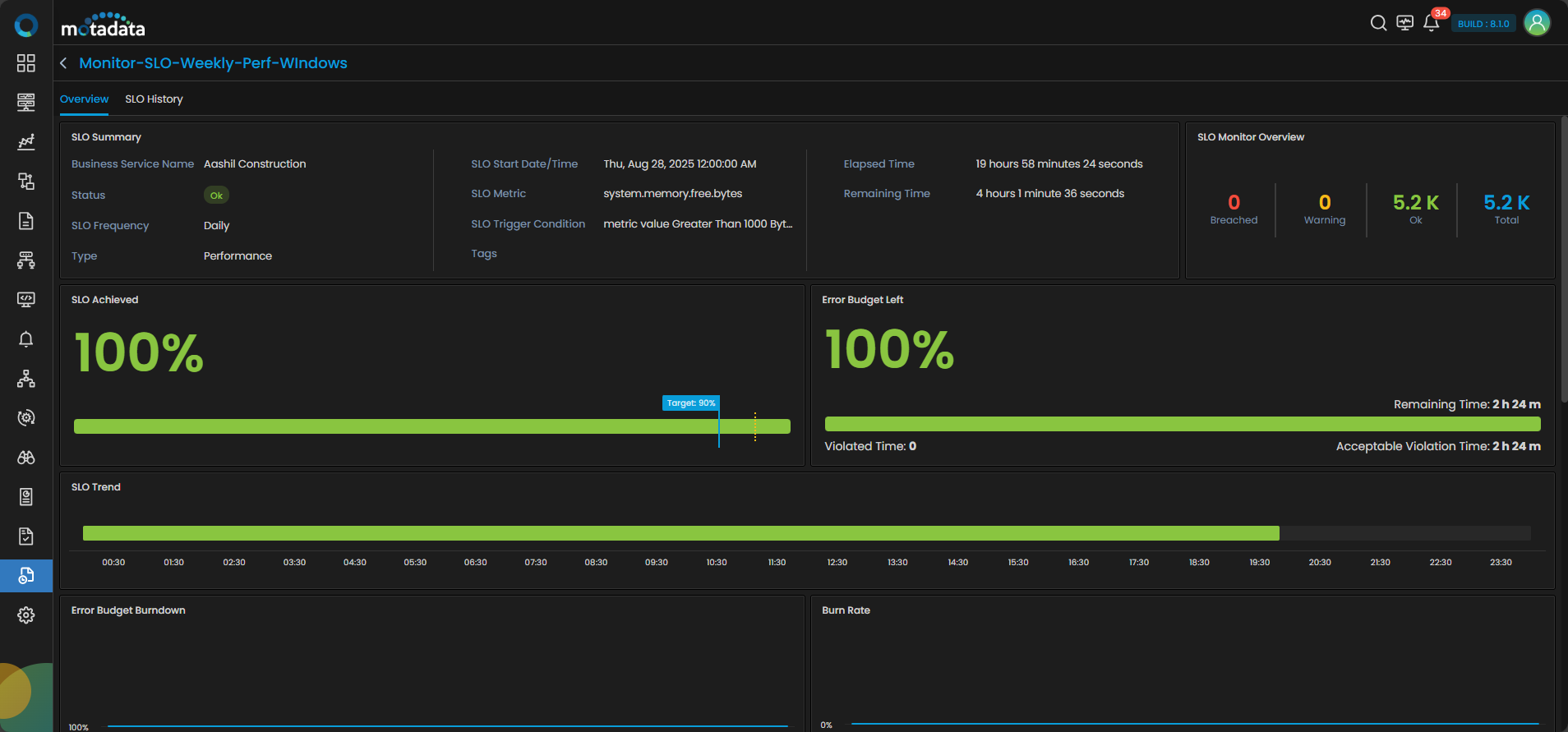 | Error Budget Left | Remaining value of allowed failure time within the SLO period. |