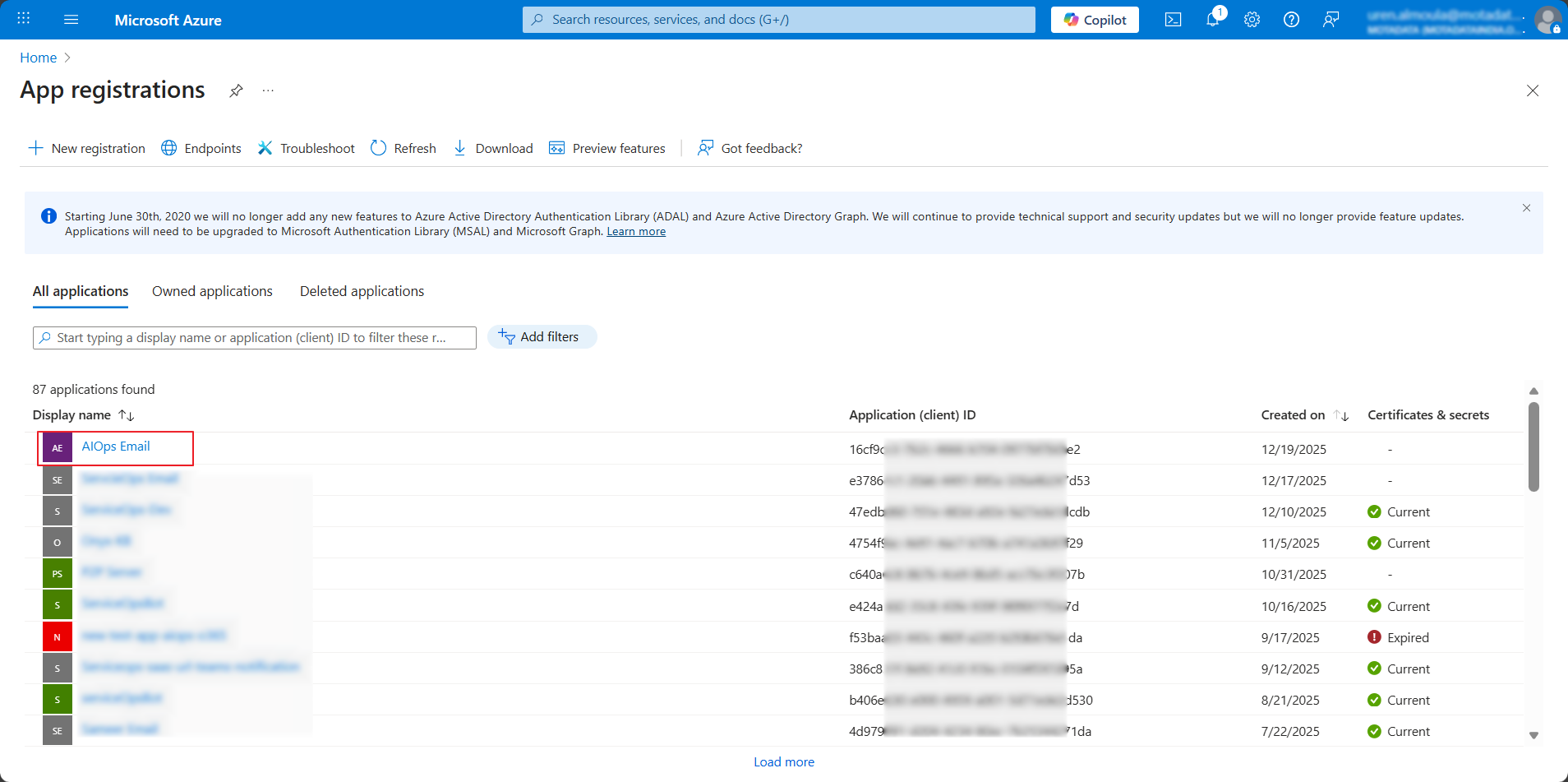 noteCreate a separate app for every incoming email server (in AIOps), if multiple servers are configured each with different domains.