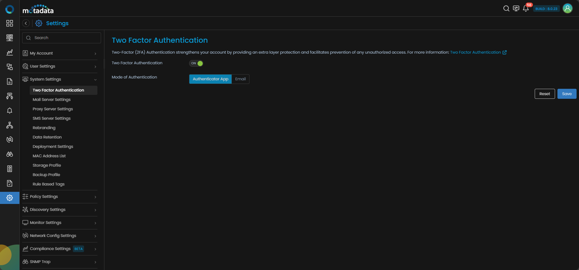 Motadata AIOps now incorporates Two-Factor Authentication (2FA) to provide an additional layer of security for user accounts. This enhancement significantly reduces the risk of unauthorized access by requiring a secondary verification step during login.
