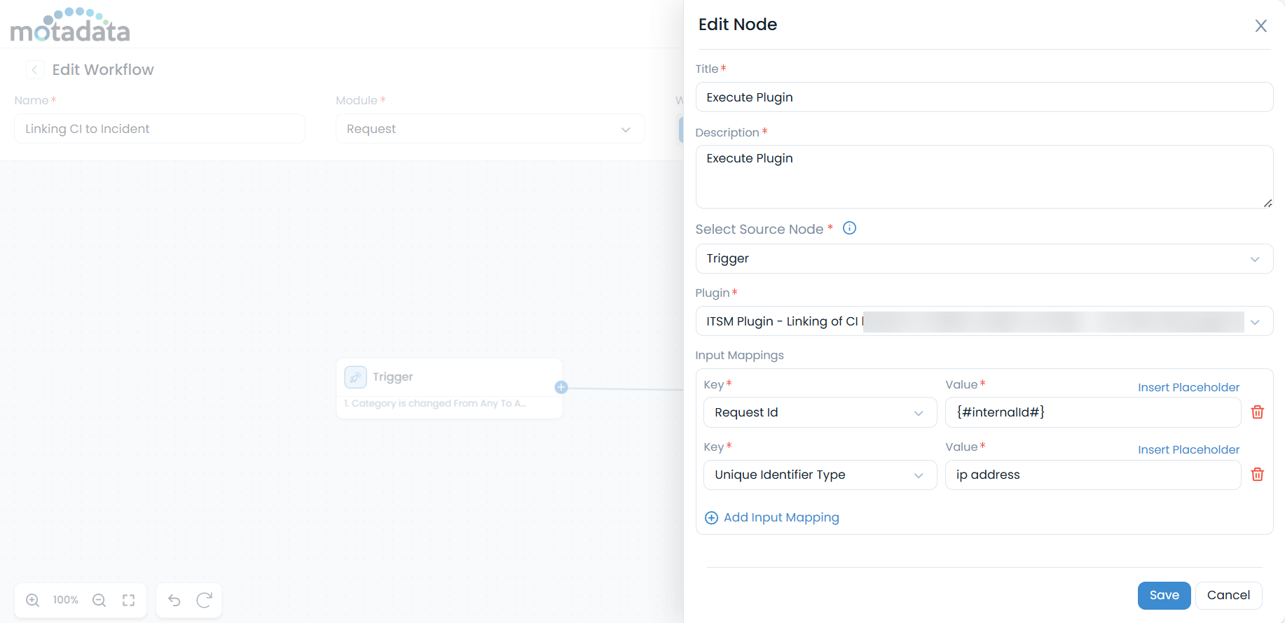 - Plugin: Select the appropriate plugin for CI linking (e.g., "ITSM Plugin - Linking of CI to Incident Requests")