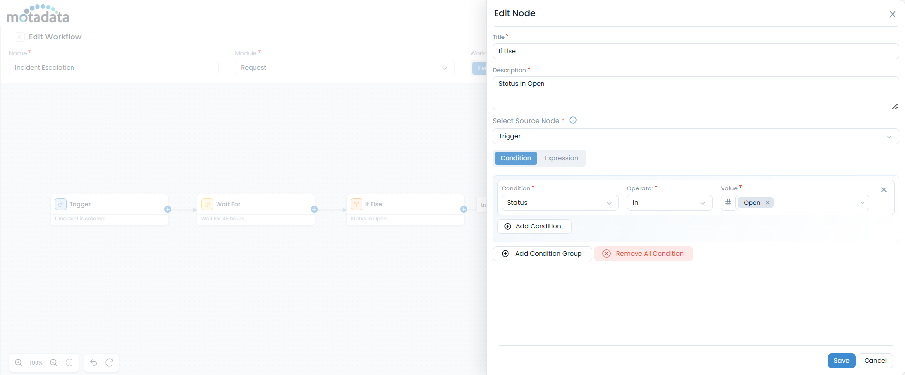 - Add Condition: Allows adding multiple conditions.