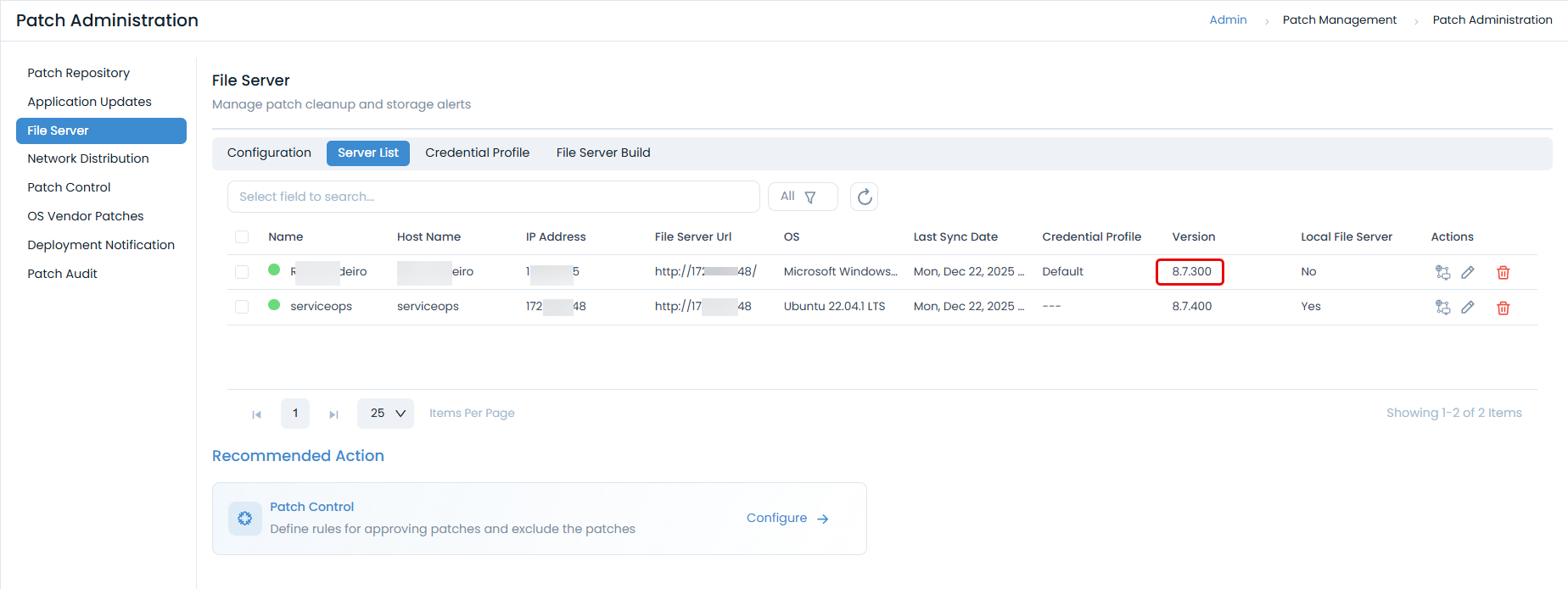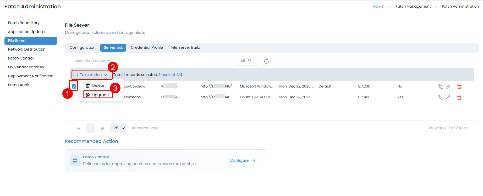 Register, secure, and manage file servers used for patch storage, distribution, and upgrades.