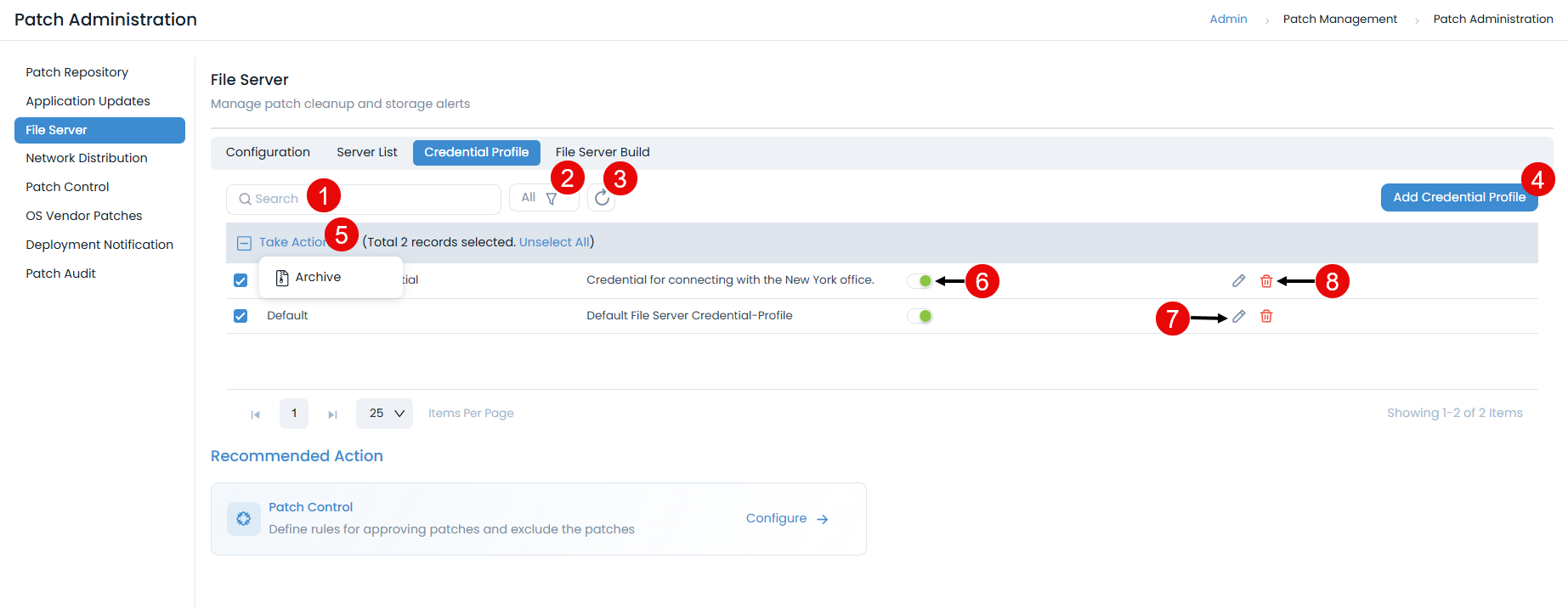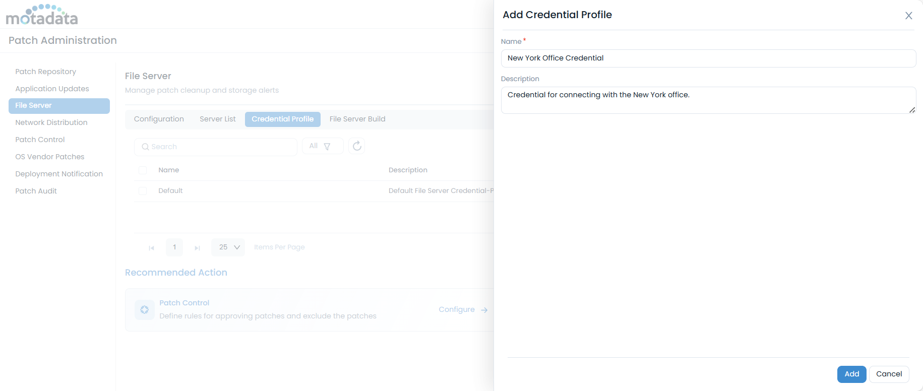- Credential Profile: Enables the creation and management of credentials required to establish a secure connection between ServiceOps and the file servers.