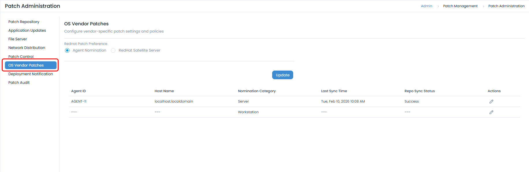 This method allows you to nominate specific agents (Workstation and Server) to handle RedHat patch management.