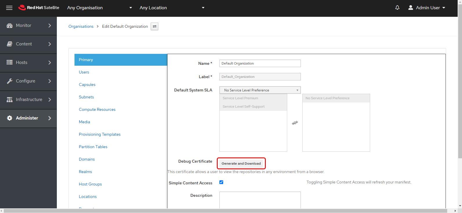 Certificate: Upload the certificate obtained from the satellite server. Follow these steps to get the certificate: