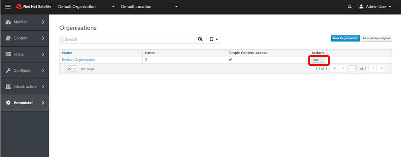 Edit the Default Organization.