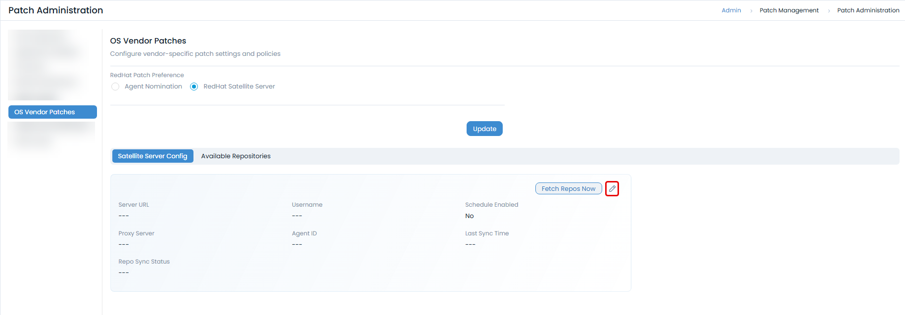 - RedHat Satellite Server: Select this option to integrate with a RedHat Satellite Server for patch management.