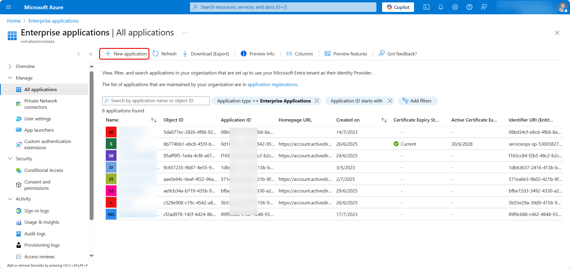 - Select Enterprise Applications and click + New application.