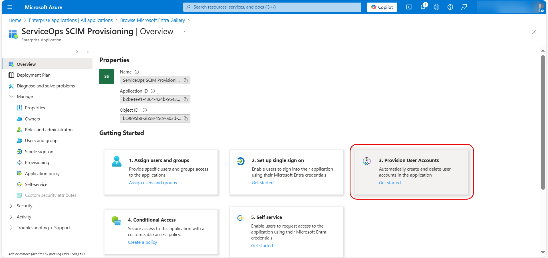 First, you need to create an Enterprise Application in Azure AD to represent ServiceOps.