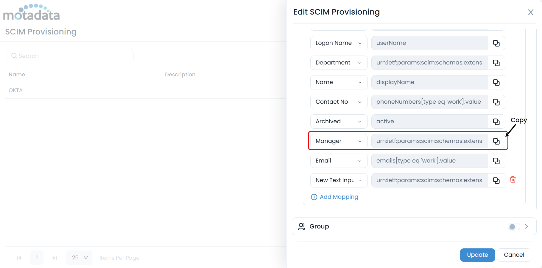 In your ServiceOps SCIM configuration page, copy the attribute value designated for the Manager field.