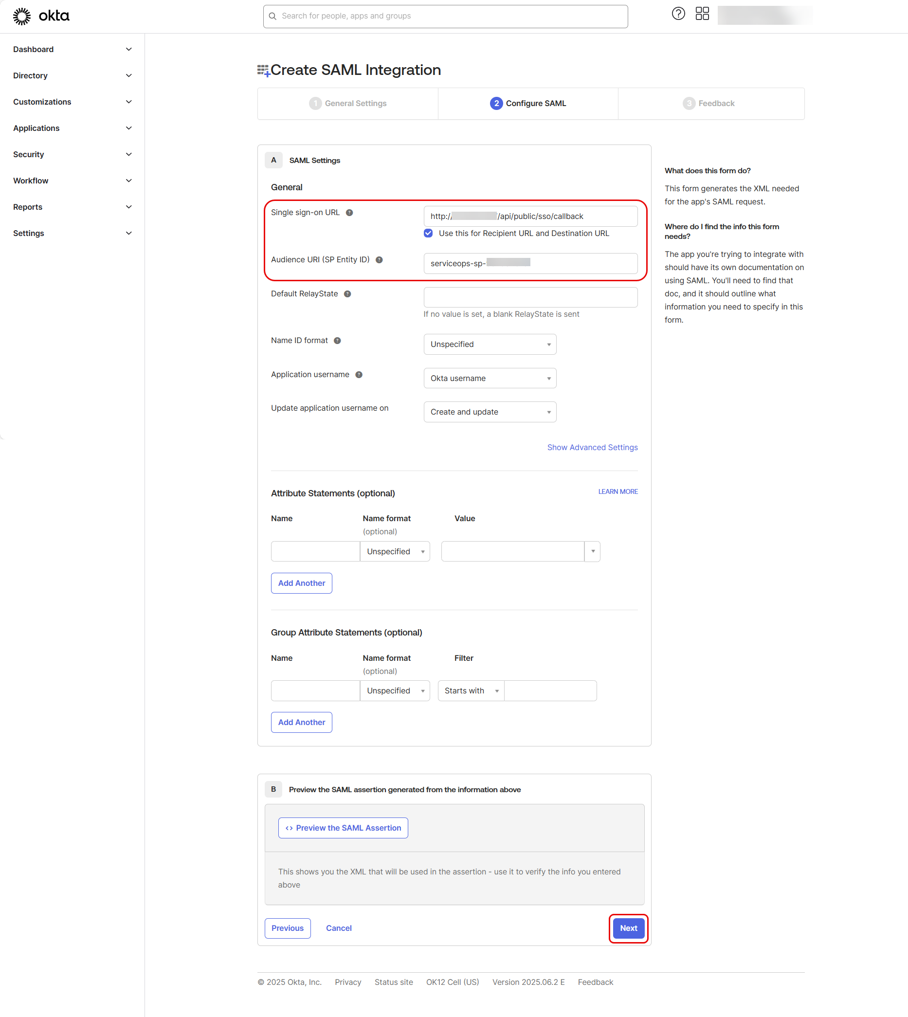 https://your-serviceops-instance/saml/acs - Audience URI (SP Entity ID):