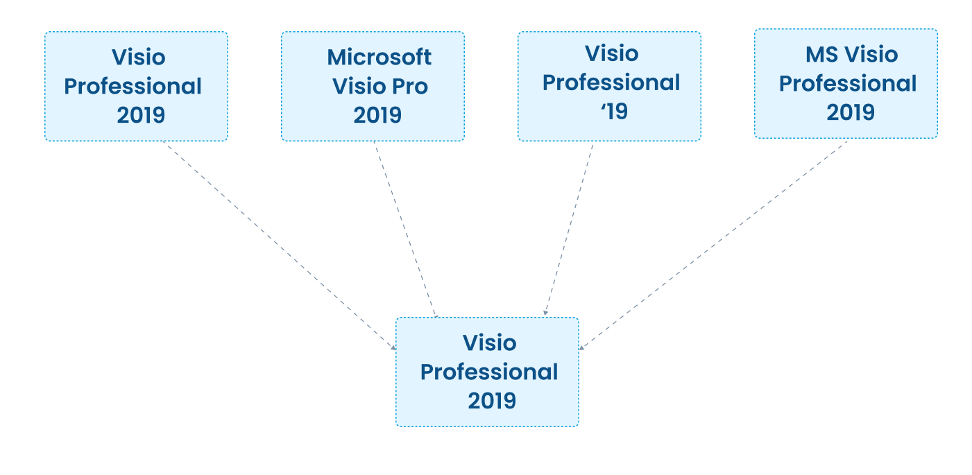 - Software Normalization: Clean up your software inventory by automatically consolidating different versions and editions of the same application into a single, standardized record. This is crucial for accurate license counting. Example: "Adobe Reader 11.0", "Acrobat Reader XI", and "Adobe Reader v11.1" are all normalized to a single record: "Adobe Acrobat Reader DC".