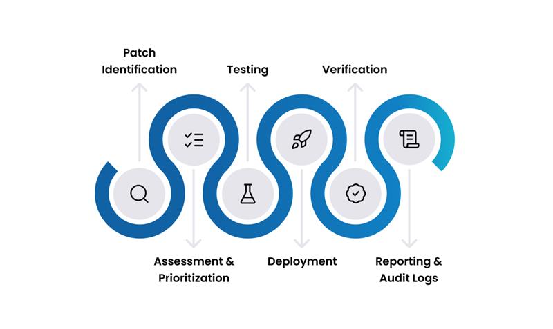 A structured lifecycle ensures that patching is done in a controlled, effective, and low-risk manner. The process can be broken down into six key stages: