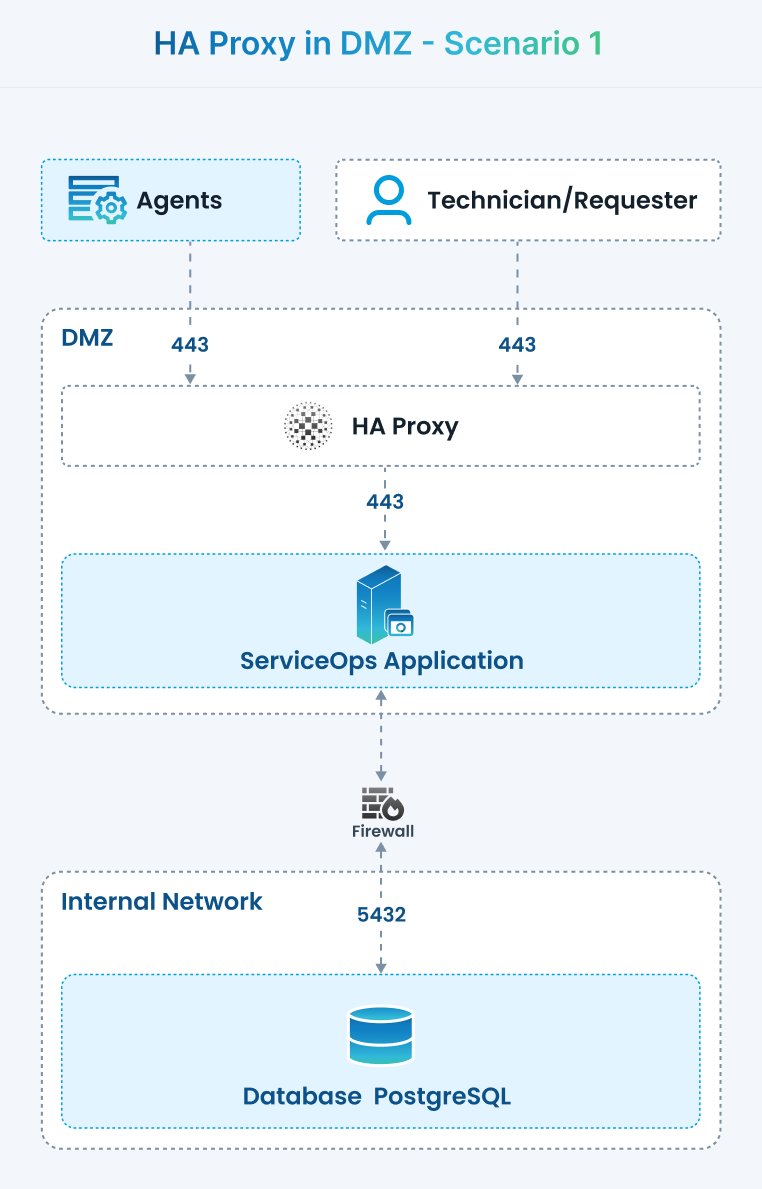 Scenario 1 — HAProxy and ServiceOps App in DMZ; DB in Secured Network