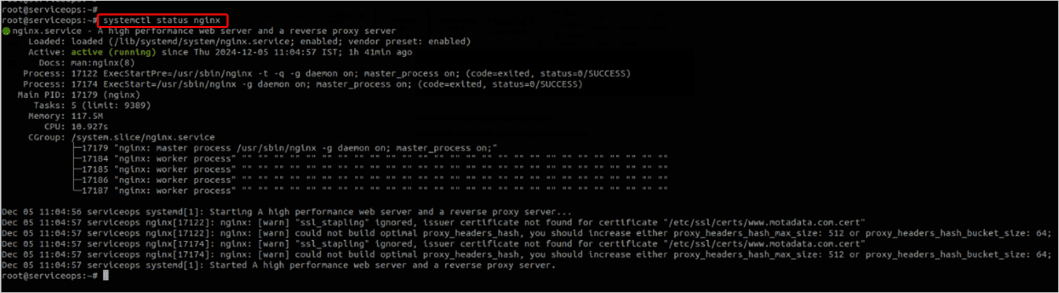 - Restart the nginx service using the below command:
