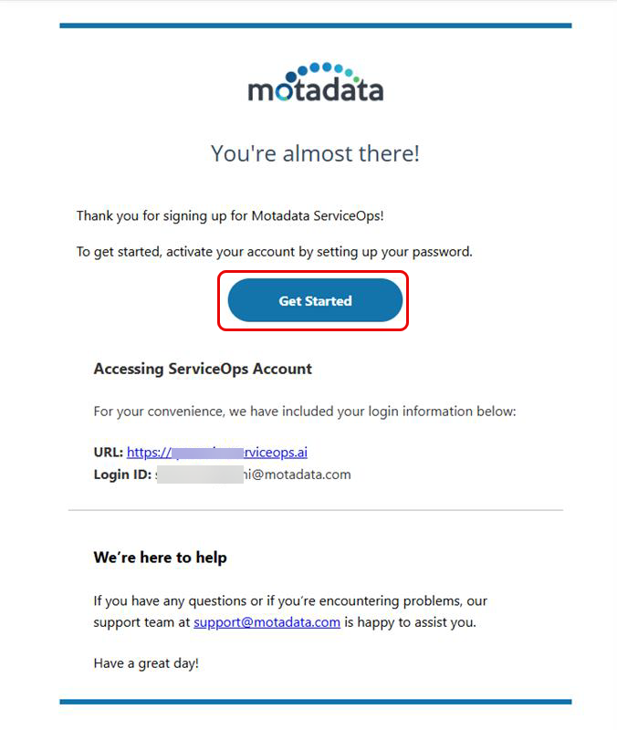 Once your SaaS instance has been provisioned by the Motadata team, you can access it securely through your web browser. Follow the steps below to activate and log in to your account: