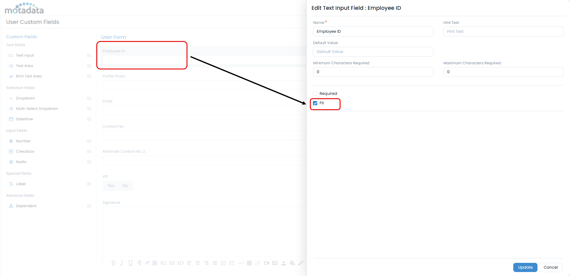 - Field Configuration: Configure PII field properties