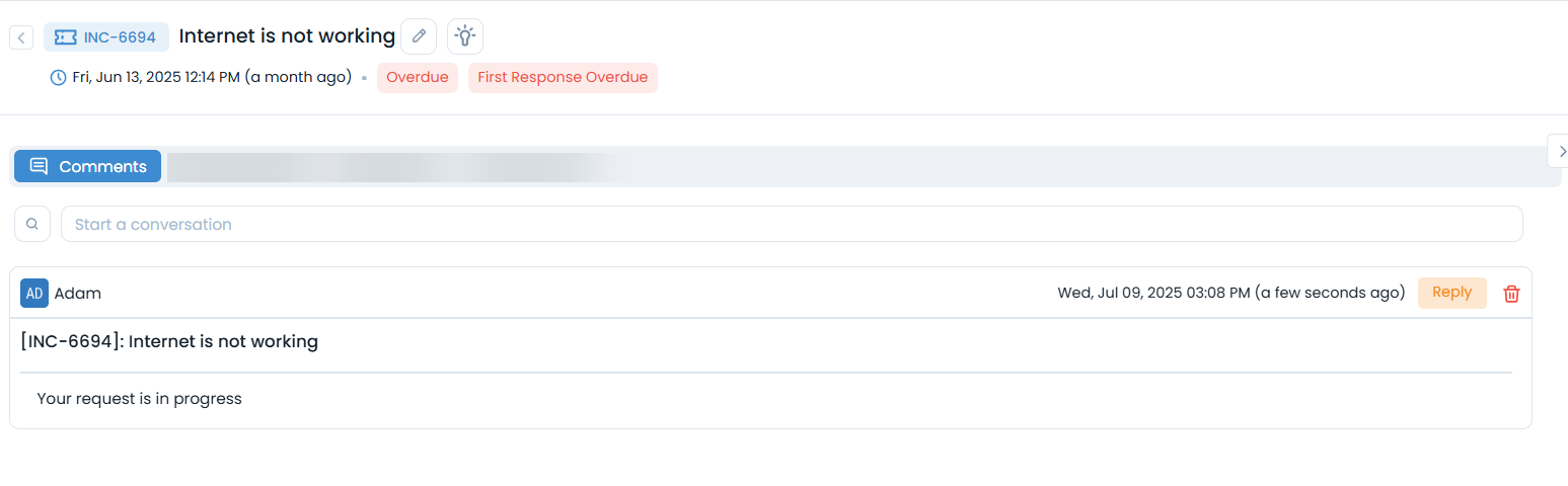 - View Conversation History: See all communications about the request in the Comments tab.
