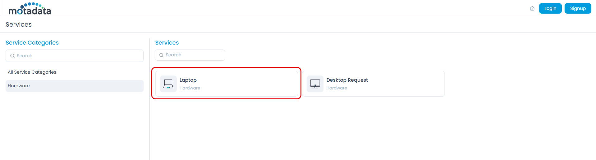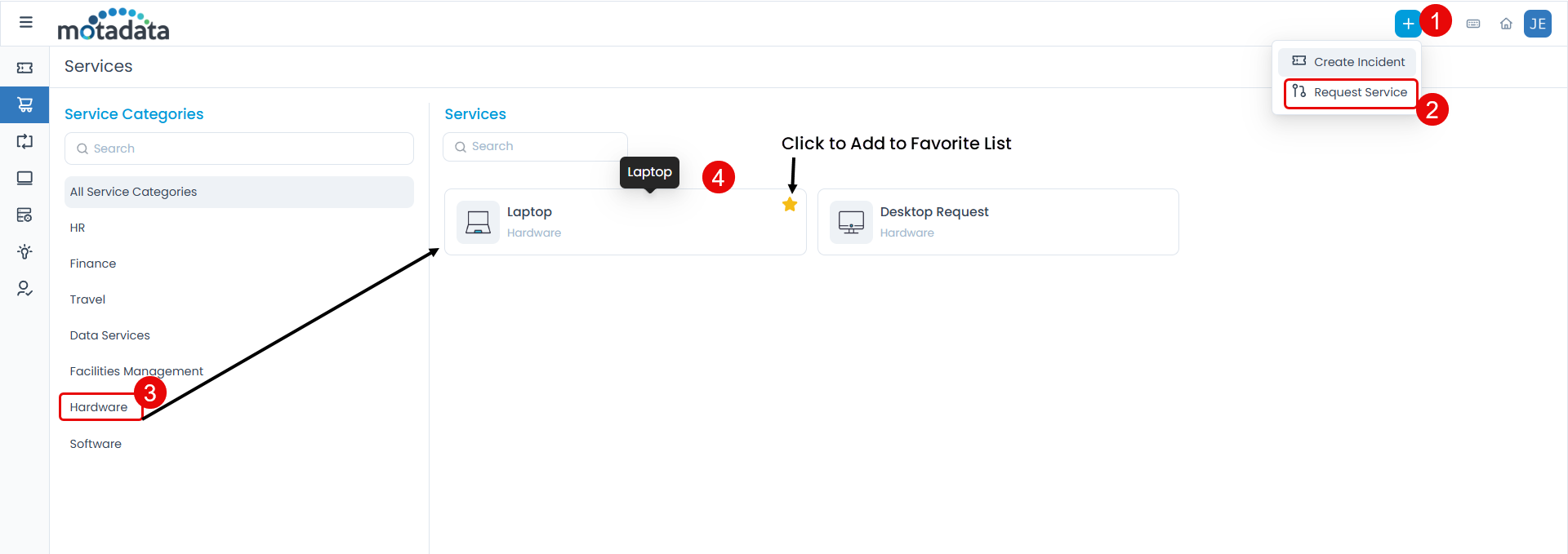 Select Request Service. Here, you can also mark frequently used services as favorites by clicking the star icon. These will appear on your Support Portal home page for quick access.