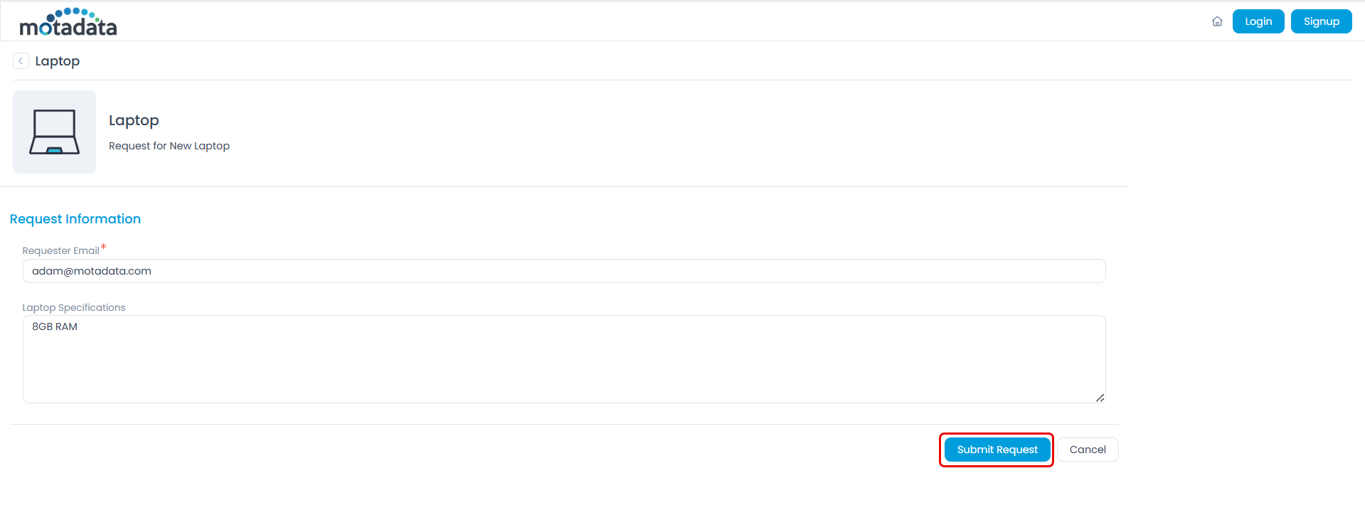 The fields in the Request Form may vary based on the administrator's configuration.