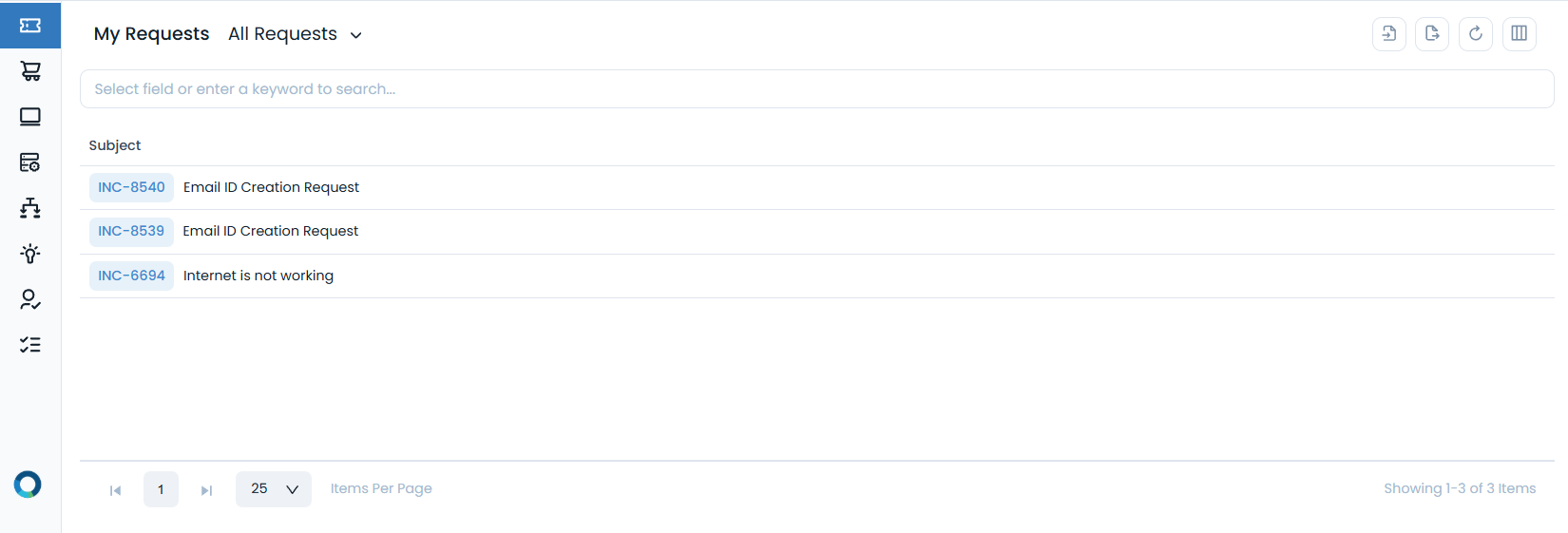 - Import: Import a list of incident requests in bulk.