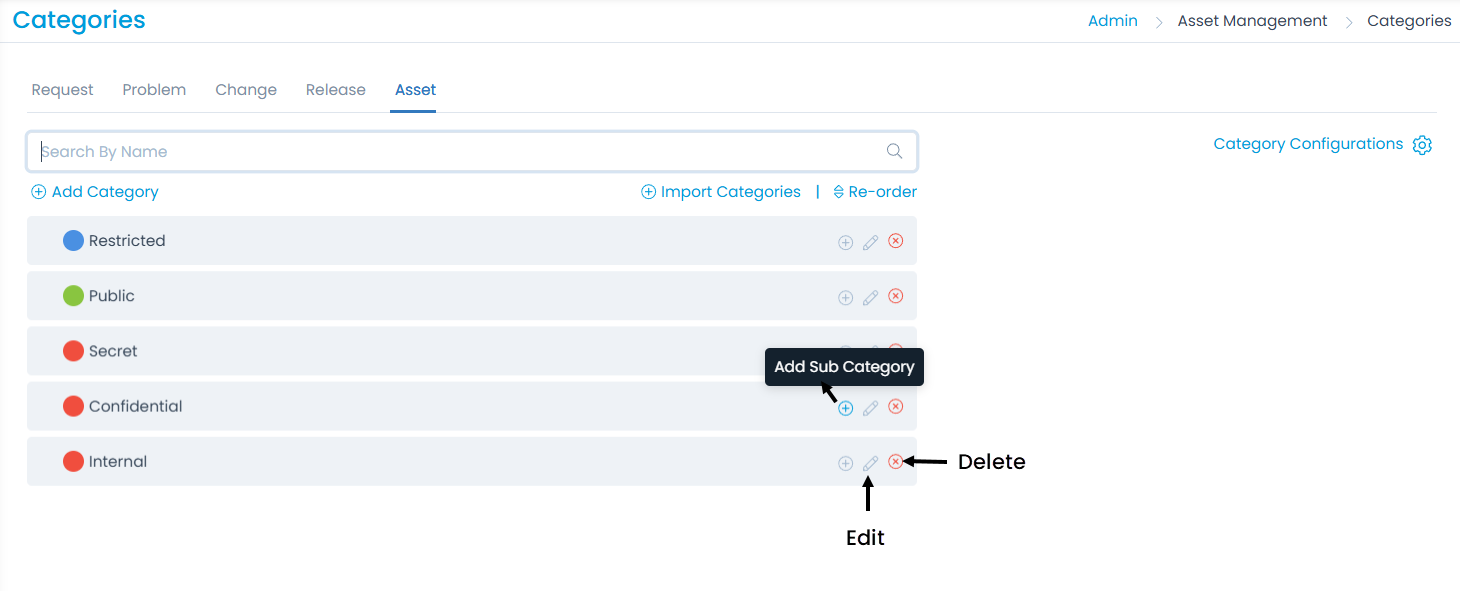 - Add Sub Category: Add a sub-category. For more details, refer to the Request Category link.