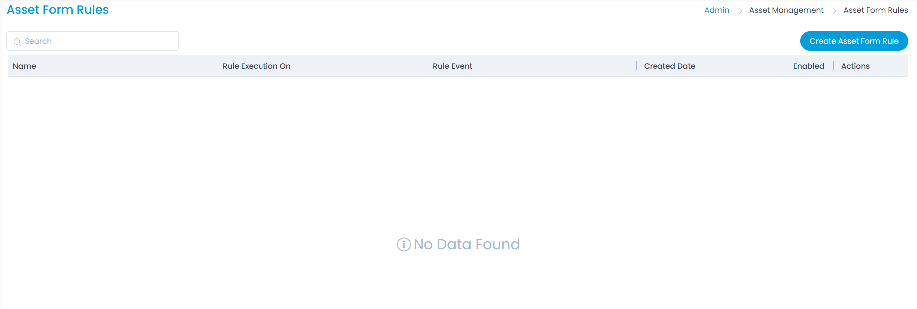 To view the Asset Form Rules, navigate to Admin > Asset Management > Asset Form Rules.