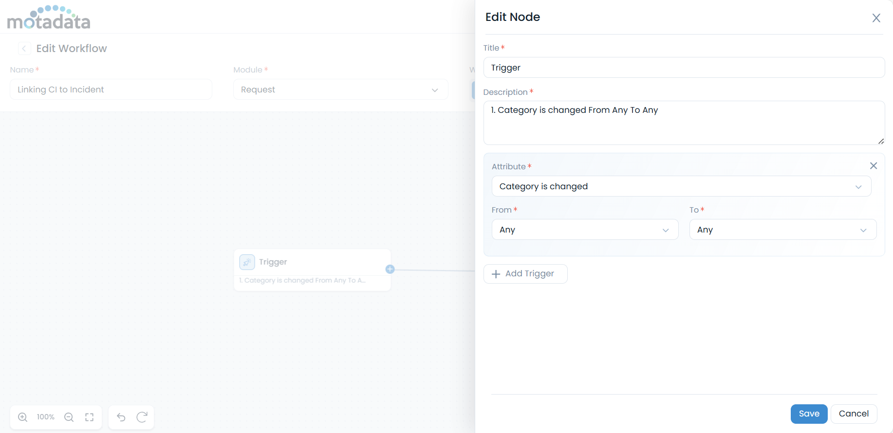 Category is changed. This trigger will initiate the workflow whenever the category of a request is changed.