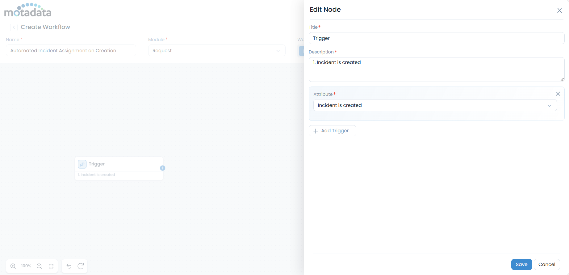 Incident is created. This trigger will initiate the workflow for every new incident.