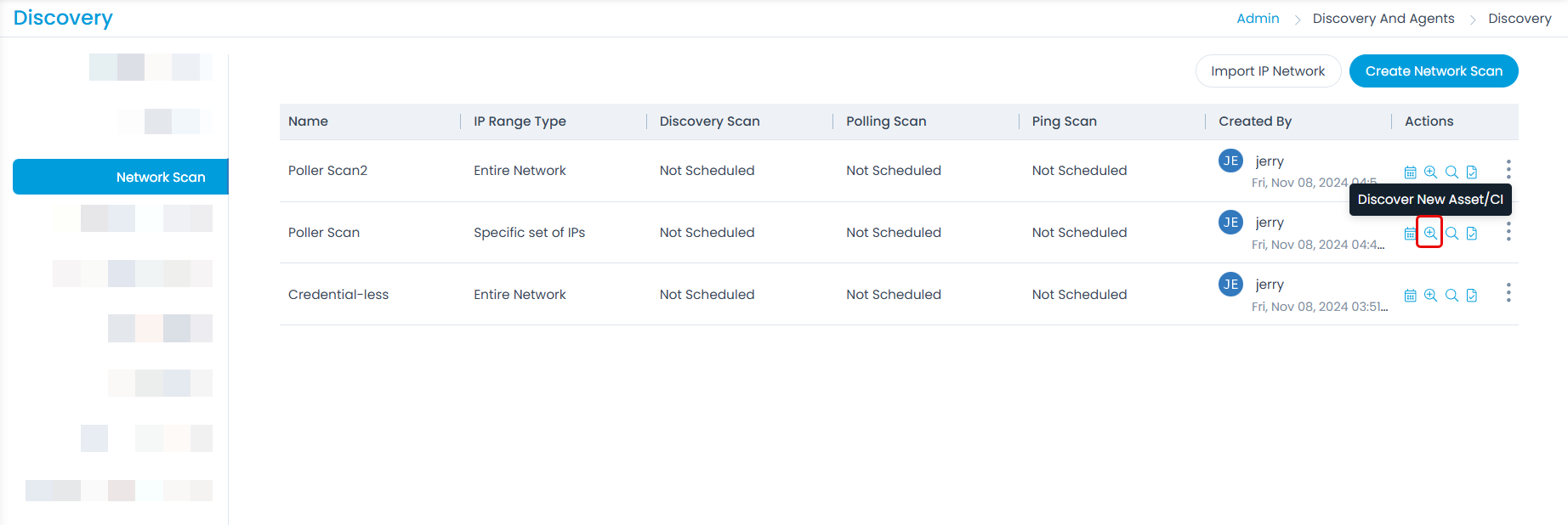 - Once done, click save and run the discovery process using the Discover New Asset/CI option.