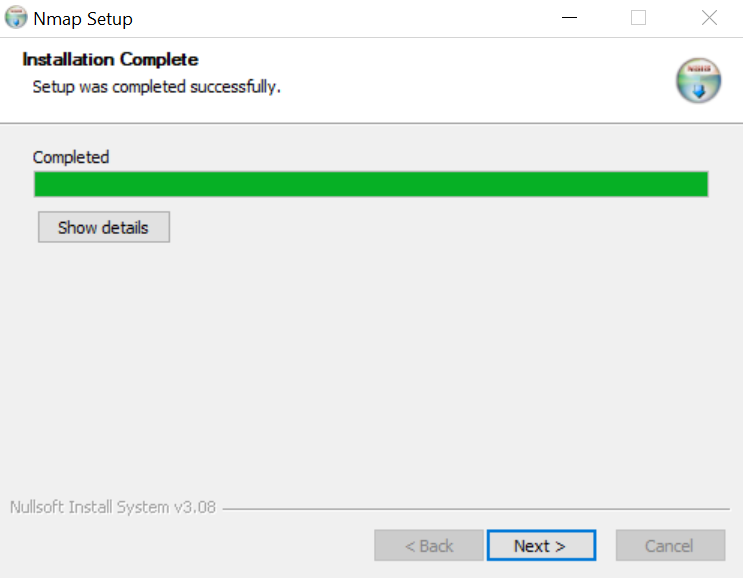 - Next, the Nmap installation process resumes. Once the Nmap installation is completed, click Next.