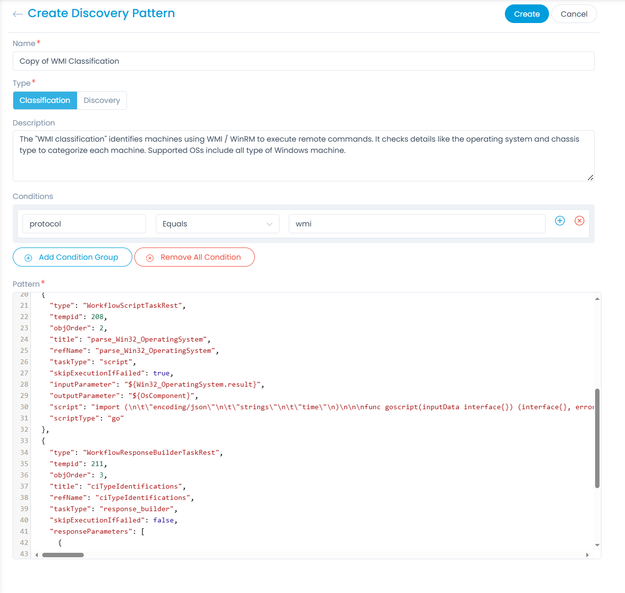 - Once done, click Create. For more details, refer to the article, "How to Maximize Asset and CI Discovery with Discovery Patterns?"